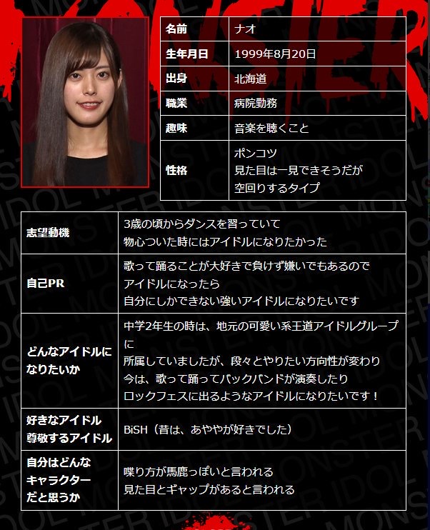 モンスターアイドル、ナオは誰で本名は横山奈央、経歴は?元アイドル?