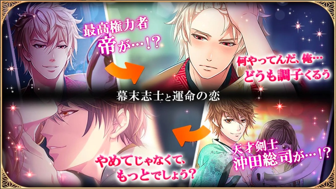 個性豊かでイケメン揃いの志士との恋愛しながら、着せ替えなどを楽しんだり特別ストーリーを読んだりと、乙女の心をギュッとつかむ内容となっています。