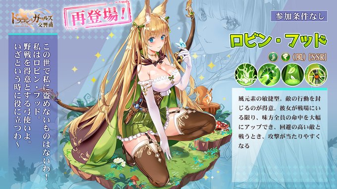 この世で私に盗めないものはないわ!私はロビン・フッド。野戦を得意とする弓使いよ。いざという時に役に立つわ~