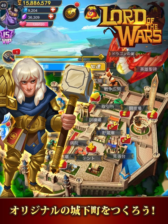 『ロード・オブ・ザ・ウォー:王国バトル』は、RPG要素とシミュレーション要素のある画期的な作品!プレイヤーはロード、つまり城主となり、オリジナルの城下町をつくって、英雄キャラクターと軍隊を強化し、世界制覇を目指します。白熱の攻城戦はまさに手に汗握ります。