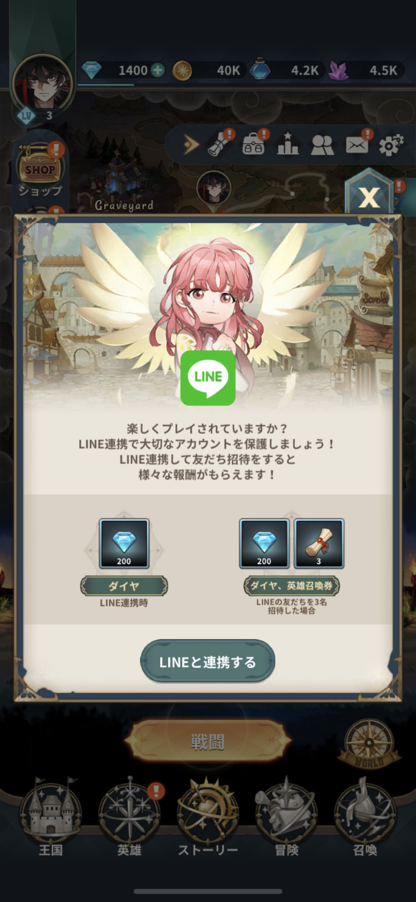 さらにお得情報を追記いたします。LINE連携でダイヤを獲得できますよ。これは連携必至ですね♪