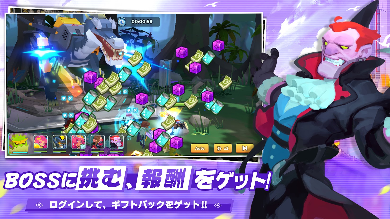『いけー!放置戦士』では、BOSSの雰囲気も抜群です。英雄キャラクターと同じくらい、しっかりデザインされて、BOSS戦もとても盛り上がります。BOSSを倒して報酬をGETして、さらに英雄を強くしてどんどん次のチャプターへ進みましょう!