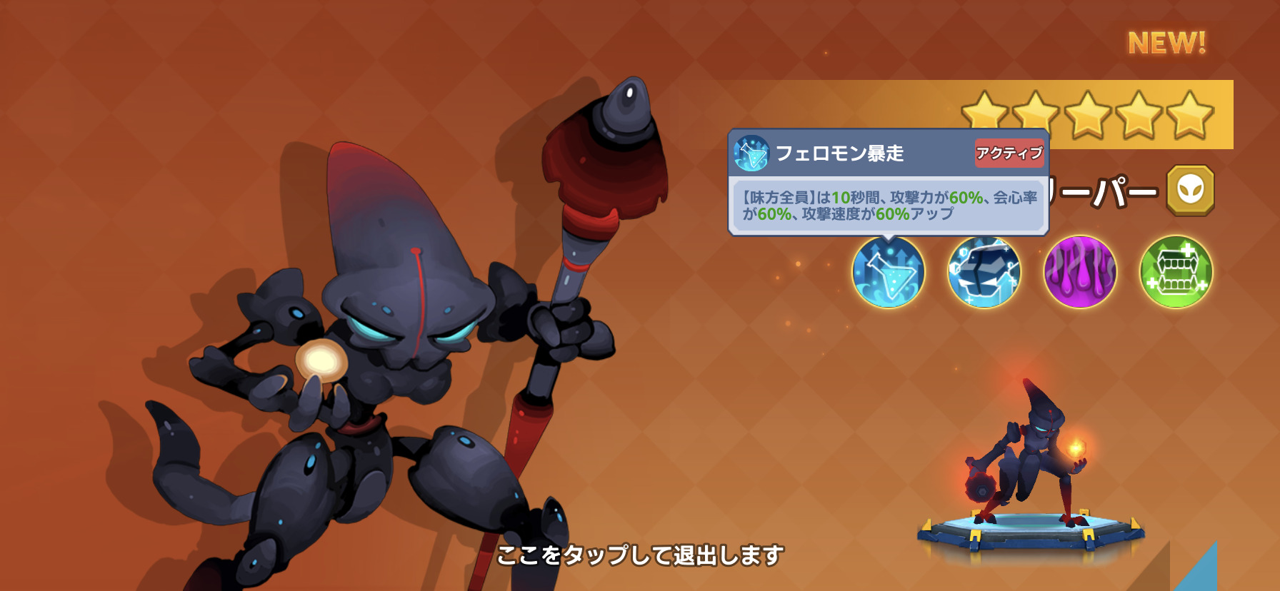 本作『いけー!放置戦士』ではキャラクターのデザインが素晴らしいです。ここまでしっかりした世界観を反映したキャラクターデザインはなかなかないと思います。どのキャラクターをみても秀逸です。マシン、バイオ、ジーン、ミステリー、エイリアンの五大勢力、それぞれ個性豊かです。自分のお気に入りの英雄を見つけて育てて、パーティに加えるのが楽しいですよ!