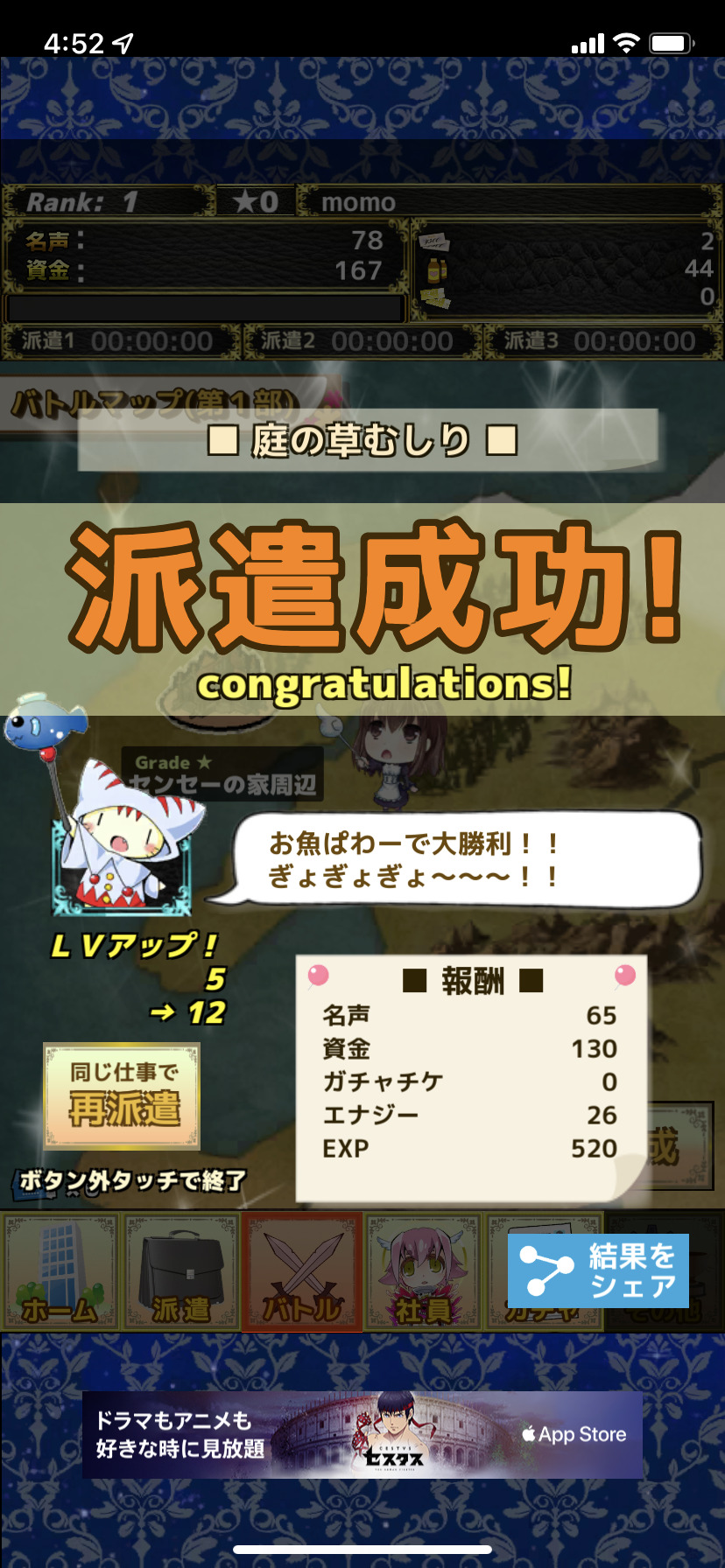 派遣報酬でガチャを引きまくれるところもGOODです。