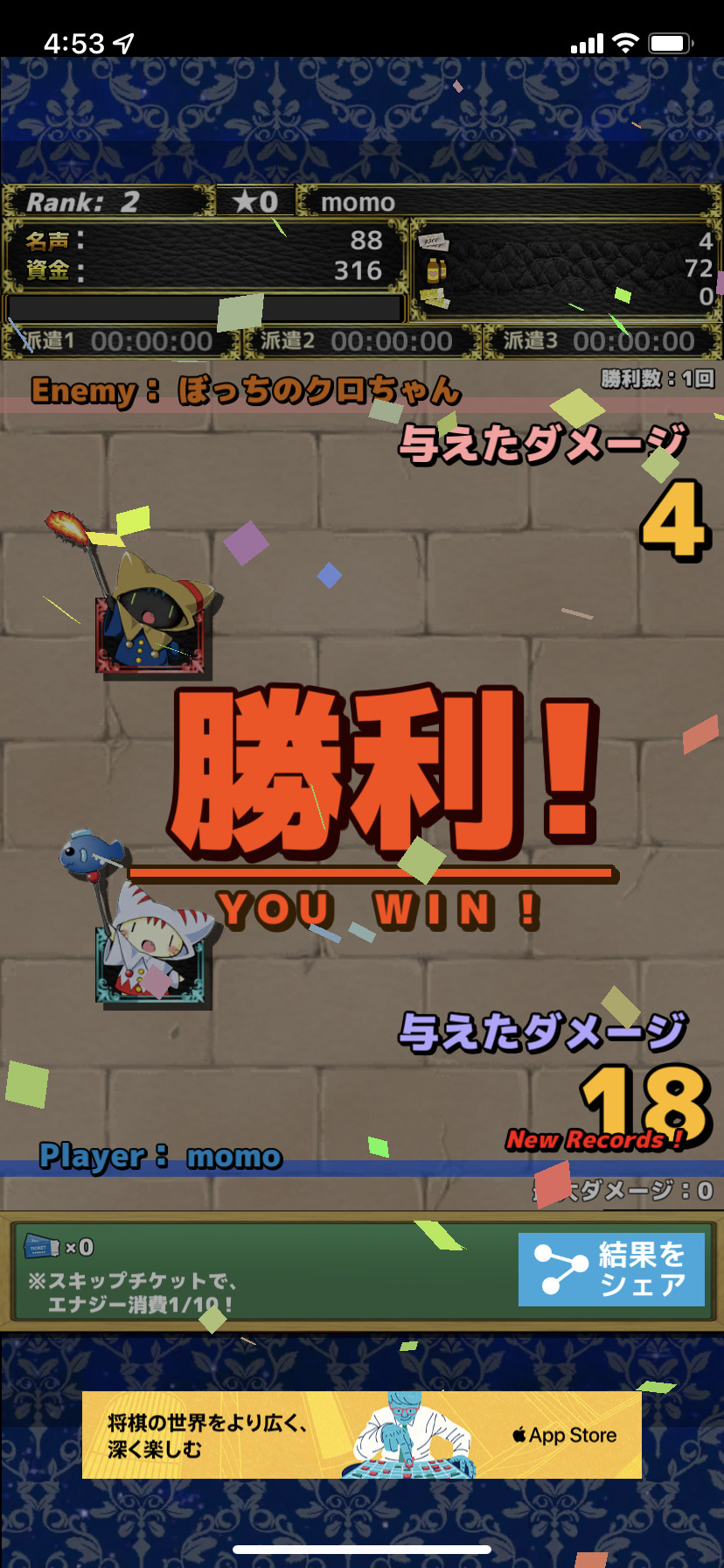 バトル結果をシェアしたりすることもできます。皆でワイワイ盛り上がりながらプレイできるのが良いですね。