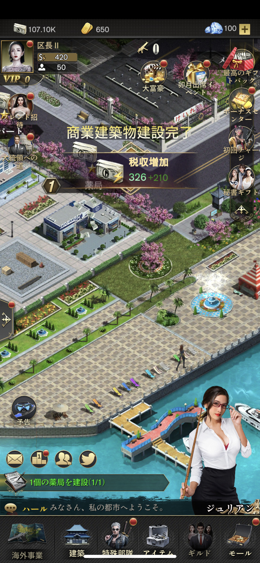 チュートリアルで本作のゲームシステムを分かり易く解説してくれる為、その後も何をすべきか簡単に理解することができます。美女の秘書さんが丁寧に教えてくれます。ミッションをこなしていき、理想の街づくりを進めていきましょう!