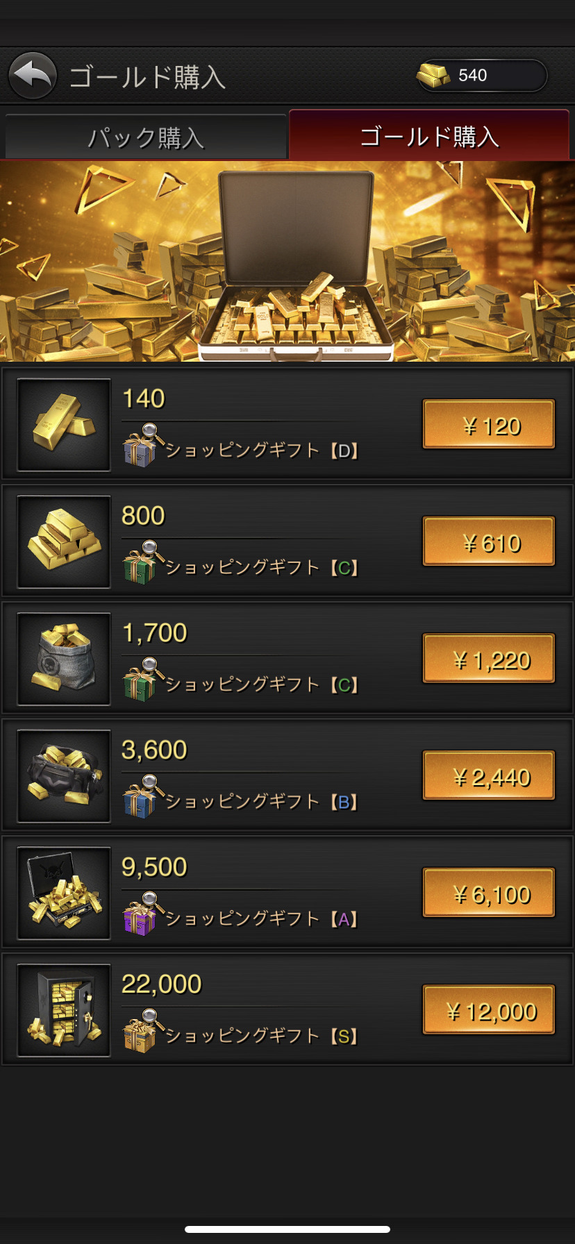 『ザ・グランドマフィア』では、ゴールドのまとめ買いがお得ですよ!