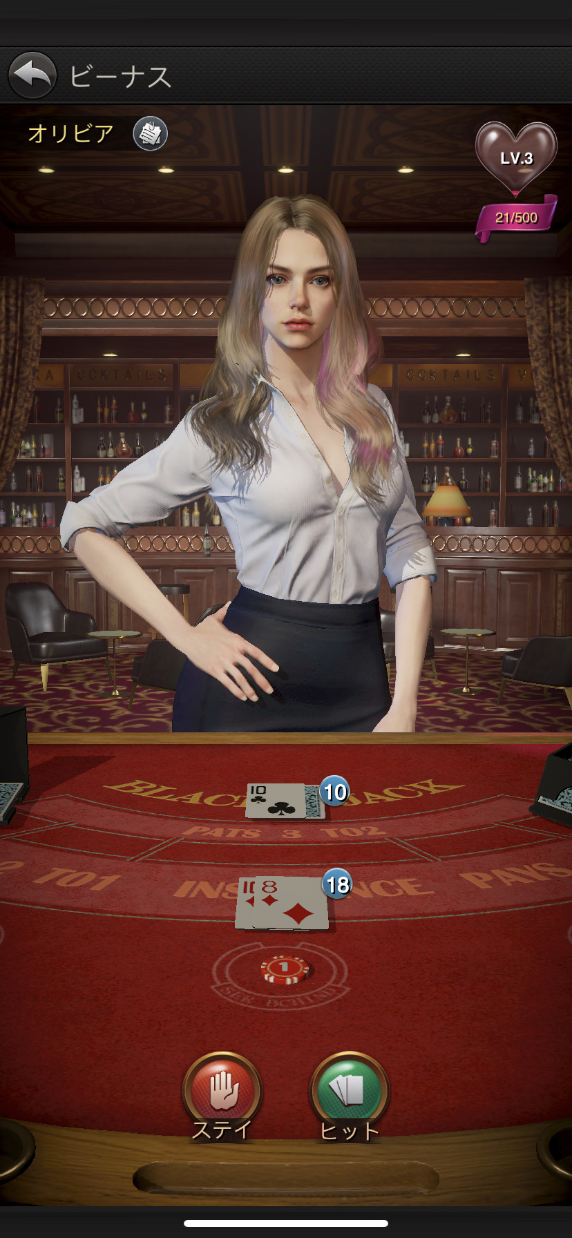 本作『ザ・グランドマフィア』では超リアルな美女システムを搭載しています。美人な秘書さんとトランプゲームだってできちゃいますよ!ブラックジャックをオリビアさんと楽しみました。