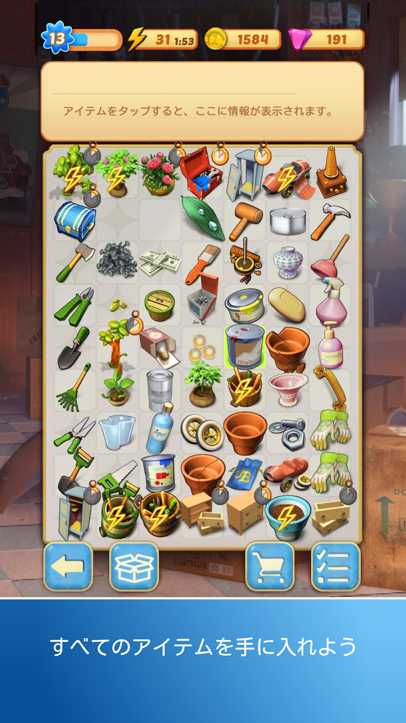 パズルで必要なアイテムを作り出し、邸宅の周りの新たなエリアをアンロックすることができます。何十年と封印されてきた一族の秘密を探ることができるんです。豊富なアイテムの組み合わせと魅力的なパズルのおかげで、謎解きの楽しみは続いていきます。