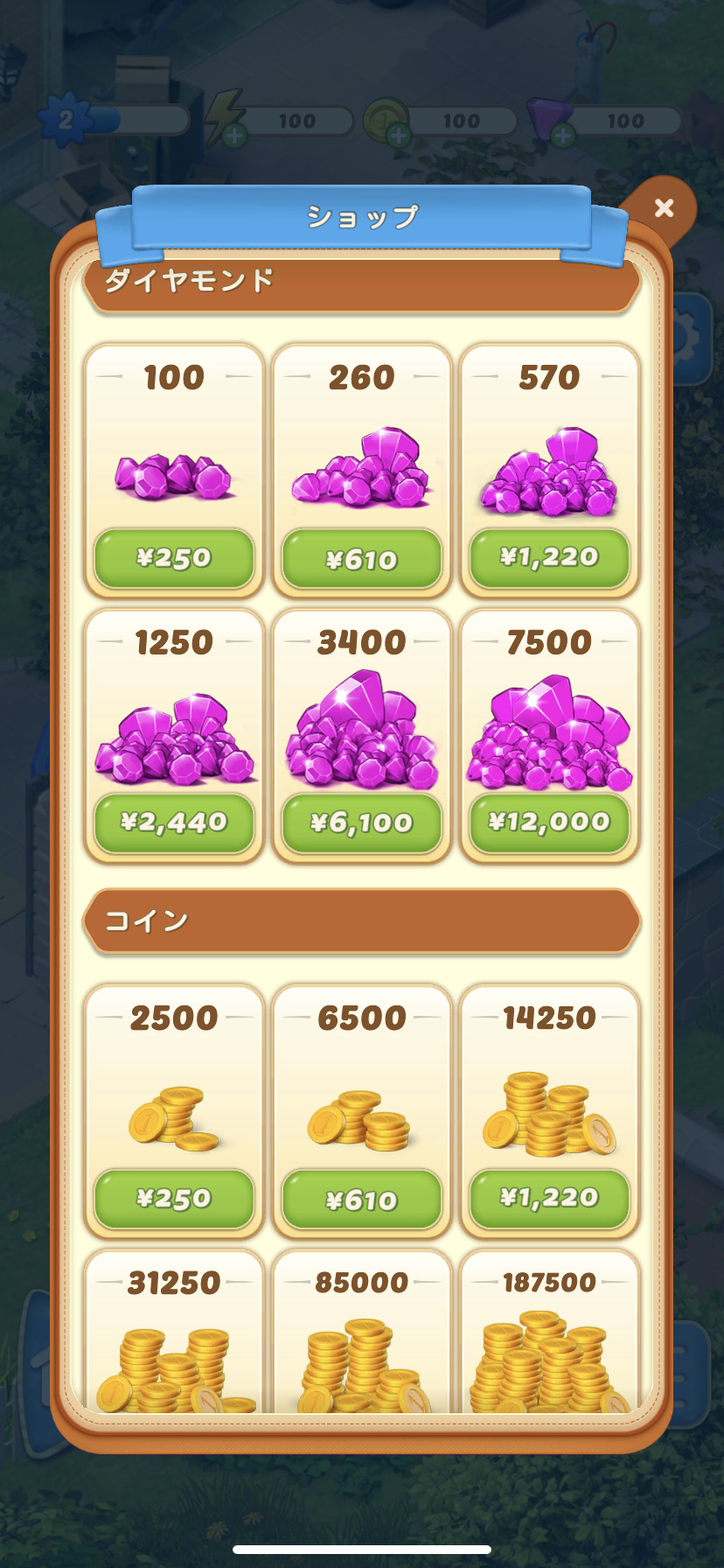 『コンビマンション (Merge Mansion)』では、ダイヤとコインが課金要素となっております。こまめにちょこちょこ購入するよりもまとめ買いが断然お得なので覚えておいてくださいね!