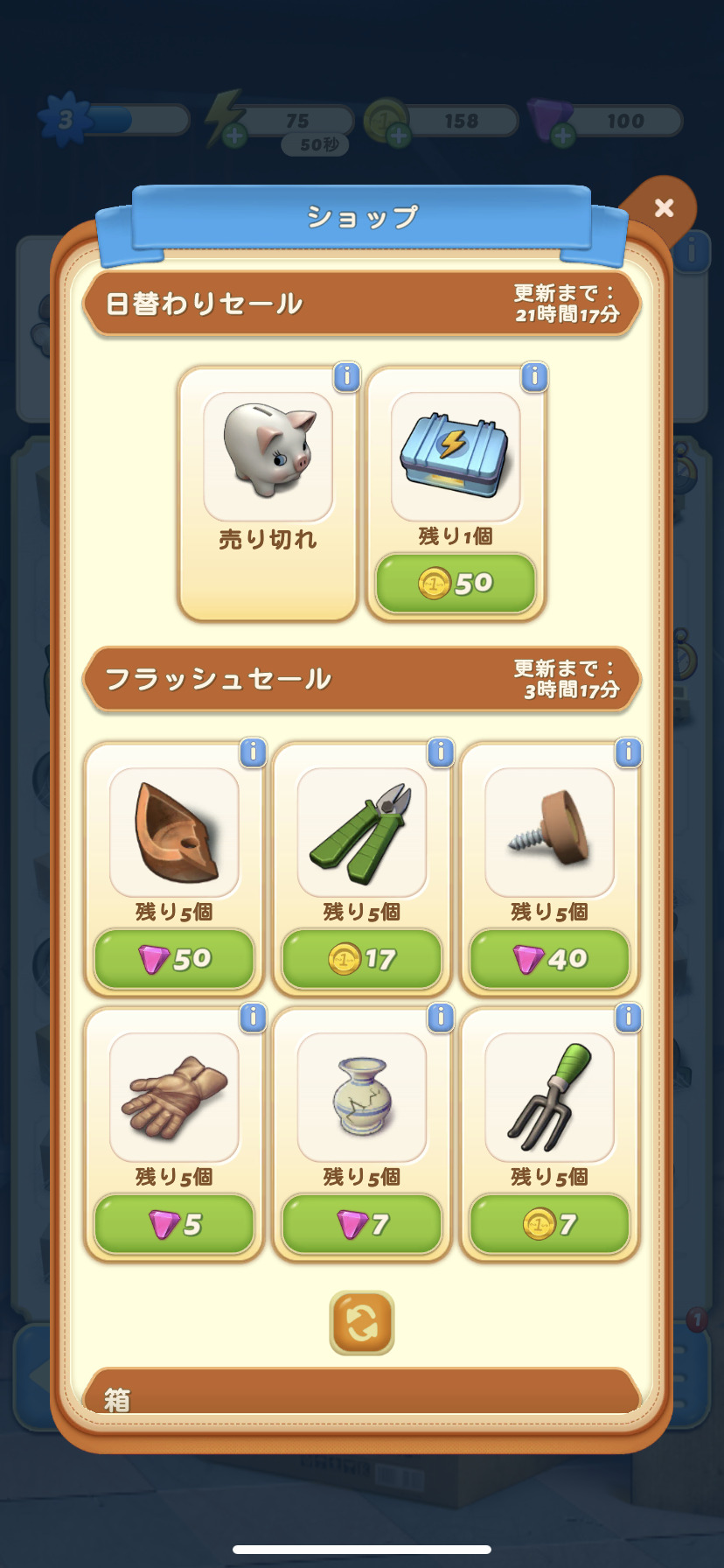 ダイヤやコインはショップで使用することができますよ!日替わりセールやフラッシュセールなどお得なセールをチェックして、欲しいアイテムをGETしましょう。