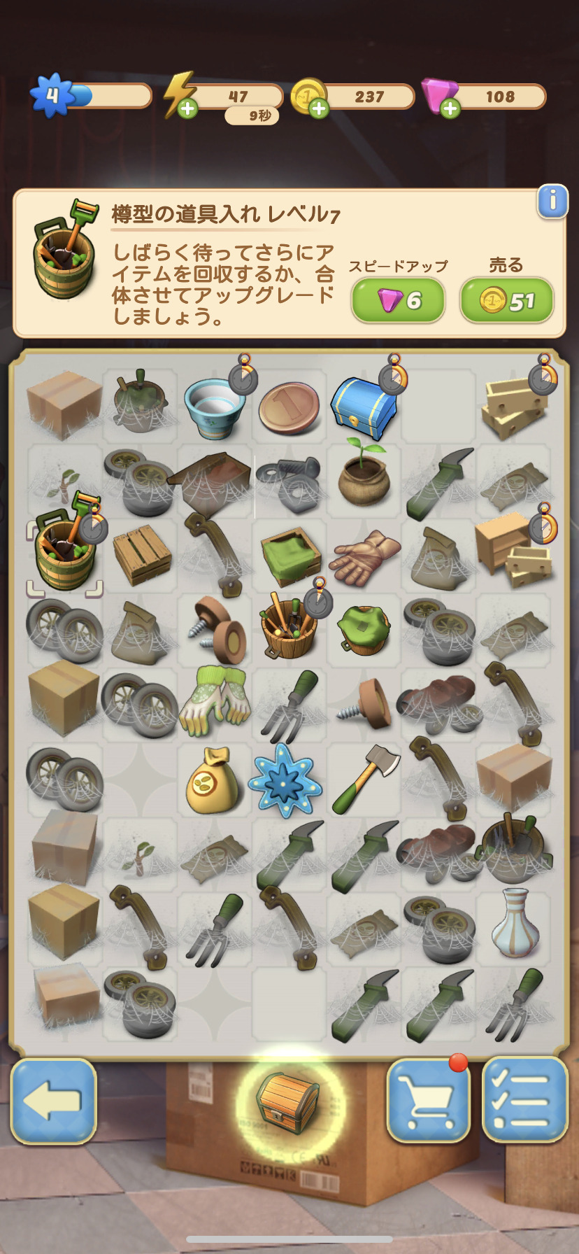 本作『コンビマンション (Merge Mansion)』では、やはり何と言ってもパズルが楽しいです!パズルゲームを通して、アイテムを組み合わせて、便利な道具を作り出しましょう。錆びついたシャベルや壊れたランプも合体させれば新品同様に早変わりしますよ!