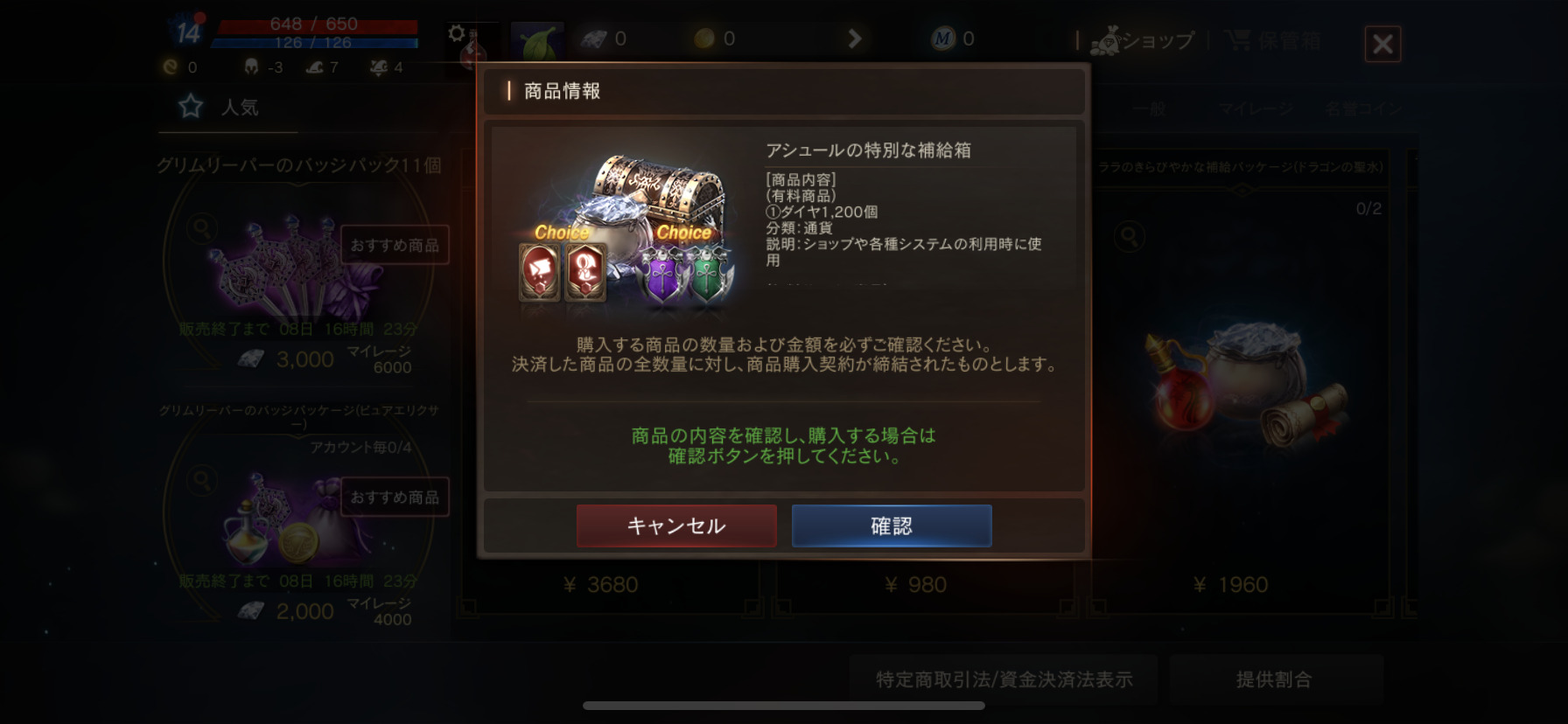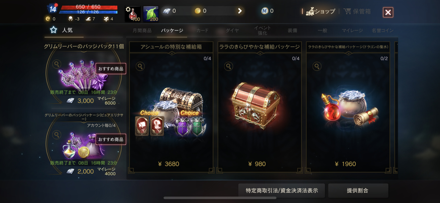 『リネージュM』では、お得なパッケージが用意されています。人気の商品やおすすめ商品などが分かり易く、表示されているところも良いですね。