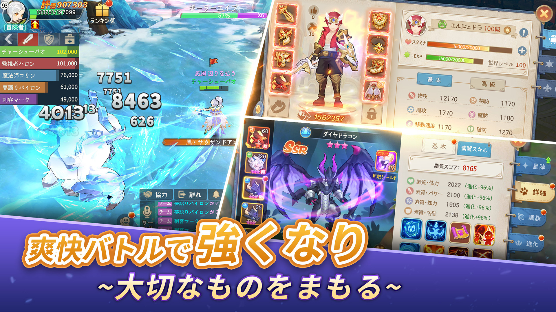 放置機能が搭載しており、ゆっくりゲームを楽しみたい方と、簡単操作で爽快感のあるバトルを体験したい方におすすめの作品です。