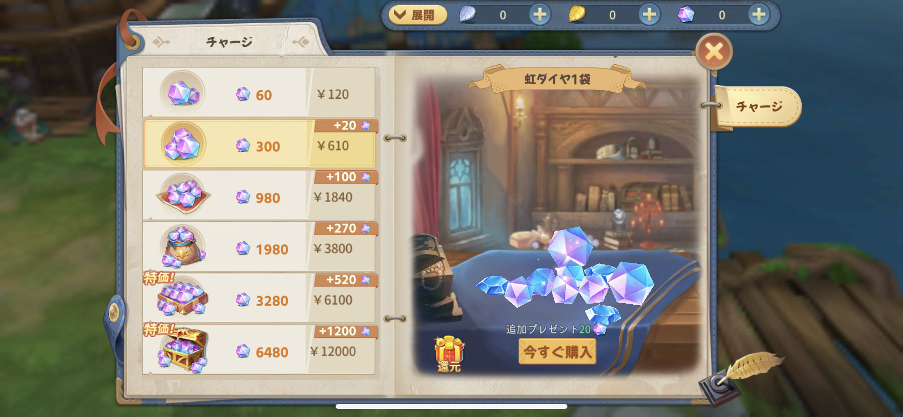 『空の勇者たち』では、虹ダイヤが課金要素となっています。