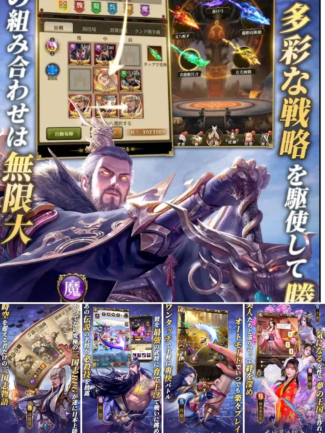 イベントごとに豪華な報酬がGETできる素晴らしい作品ですよ。また、人気武将“魔・貂蝉”が美人キャラクターになって登場しています!