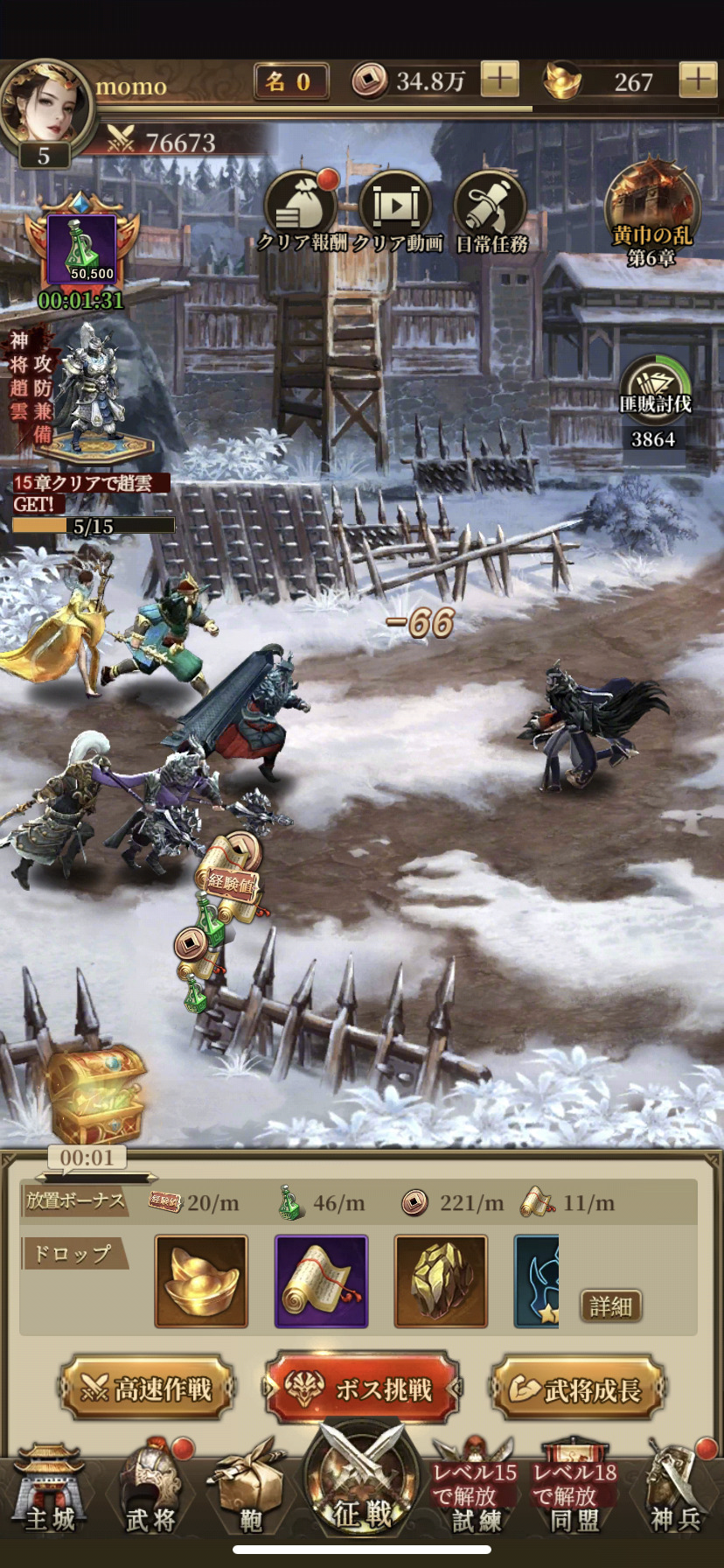 本作『三国武神伝~最強名将の成り上がり~』では、育成システムも大変充実しており、ラクラク武将を育成することができます。