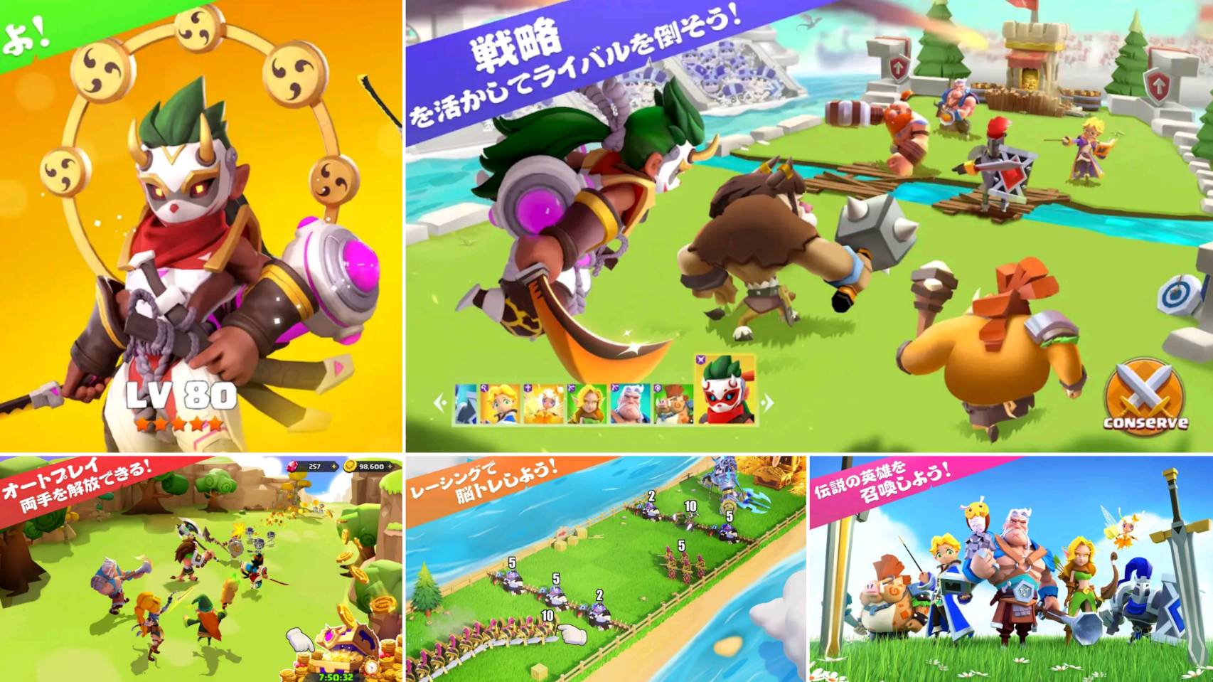 英雄の個性を理解し、最適な配置をするだけで戦況を一変させることができますよ!バトルの勝利の鍵のひとつに、チーム編成があります。個性豊かな5つの陣営、70人以上の英雄が登場しています。英雄を育成し、最強の部隊を編成しましょう!
