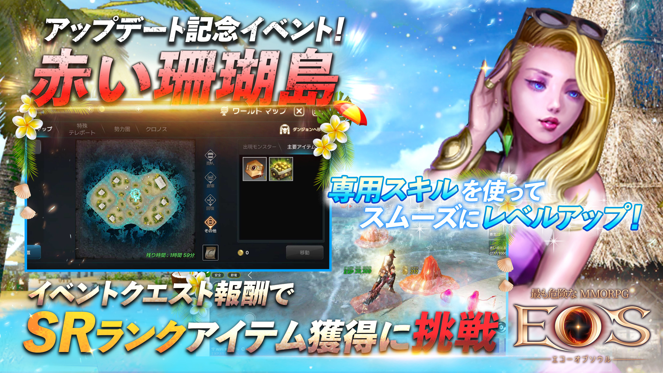 『EOS-エコーオブソウル-』ではアップデート記念イベントが開催されています。イベントクエスト報酬でSRアイテム獲得に挑戦できますよ!ぜひ赤い珊瑚島にトライしてみて下さいね!