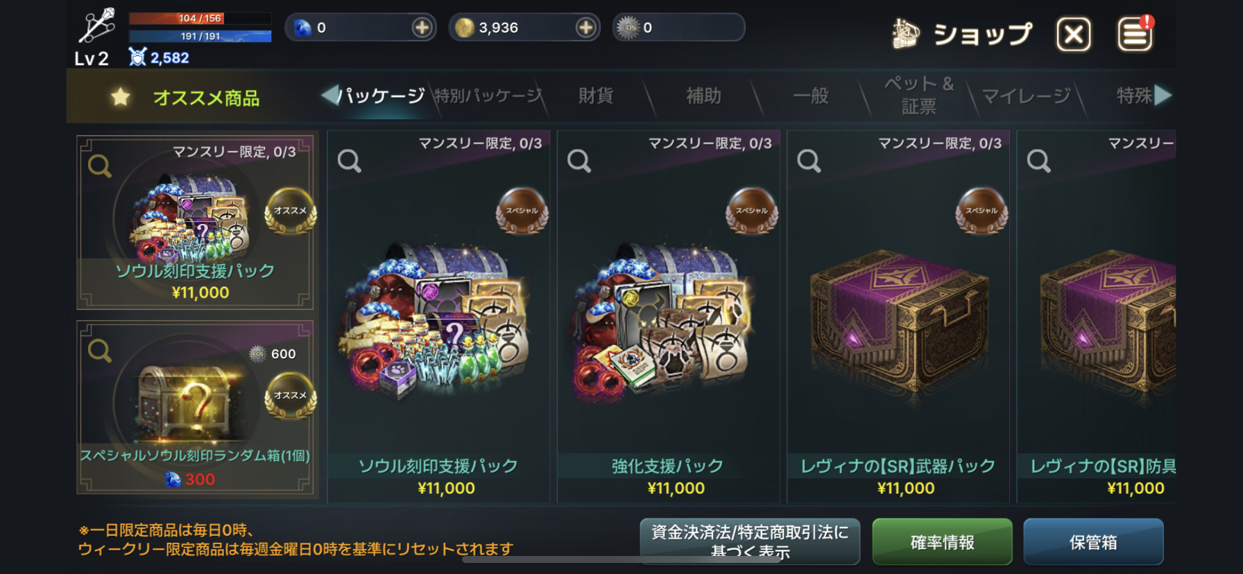 ソウル刻印支援パックや強化支援パックなど、目的に応じたパック名になっている為、分かり易く、選びやすいですよね。