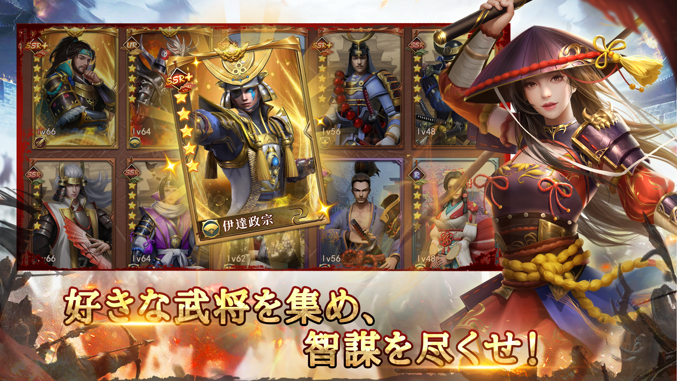 『戦国将魂 天下統一の道へ』は、戦国時代を舞台に天下統一を目指す戦略シミュレーションゲームです。現在はandroid版のみ配信されています。有名戦国武将が100名以上登場しており、皆ビジュアルがとにかくカッコいいです。武将の組み合わせも戦略のひとつとなるところが面白いです。内政要素も充実しており、やり応え十分の作品となっています。事前登録が10万件に達したため、ゴールド×200、高級募集券×20、そしてSSR武田信玄を貰えますよ!また、初回課金は金貨が2倍分もらえます。これはお得ですのでぜひチェックしてみてくださいね。