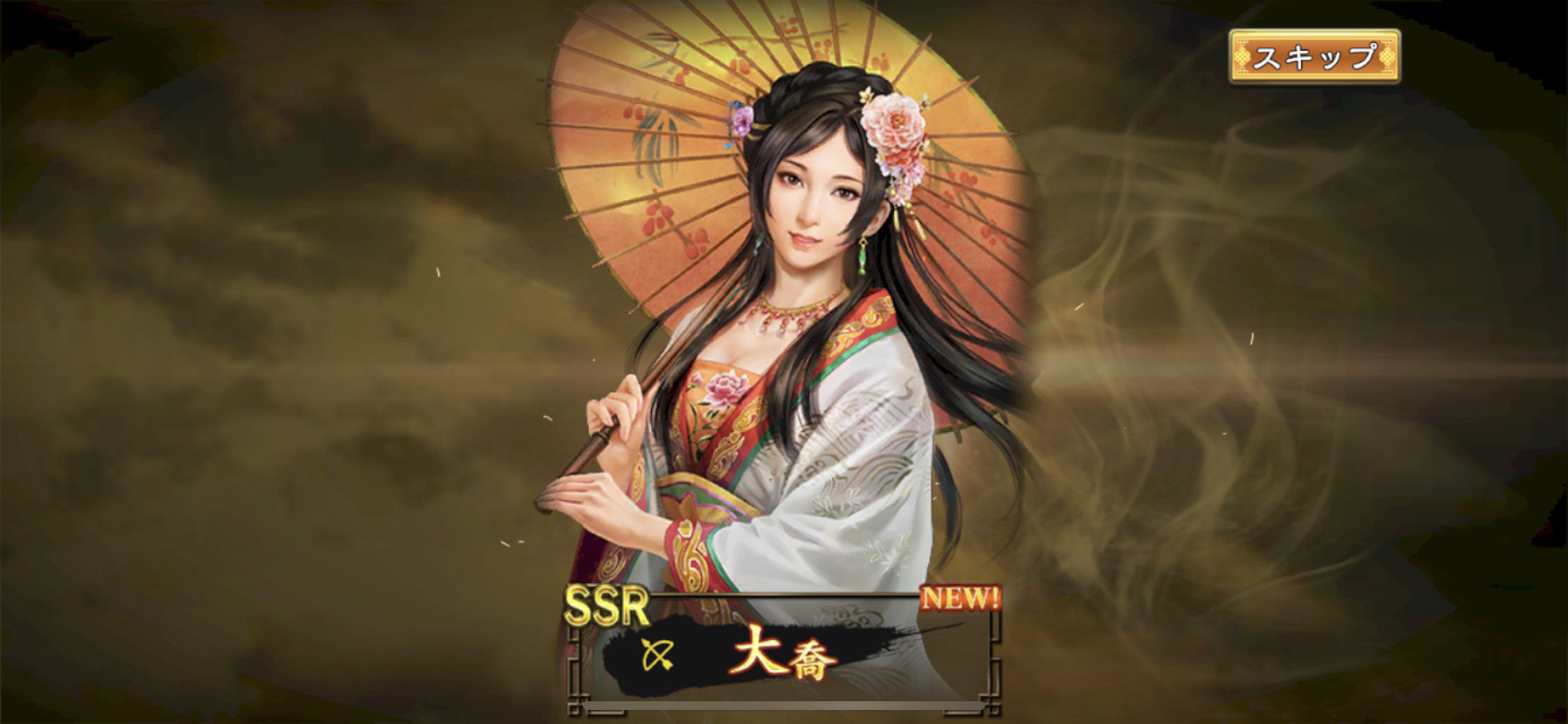 曹操、劉備、孫権、呂布……三国志の武将たちが多数登場しています。個人的には大喬がお気に入りです。
