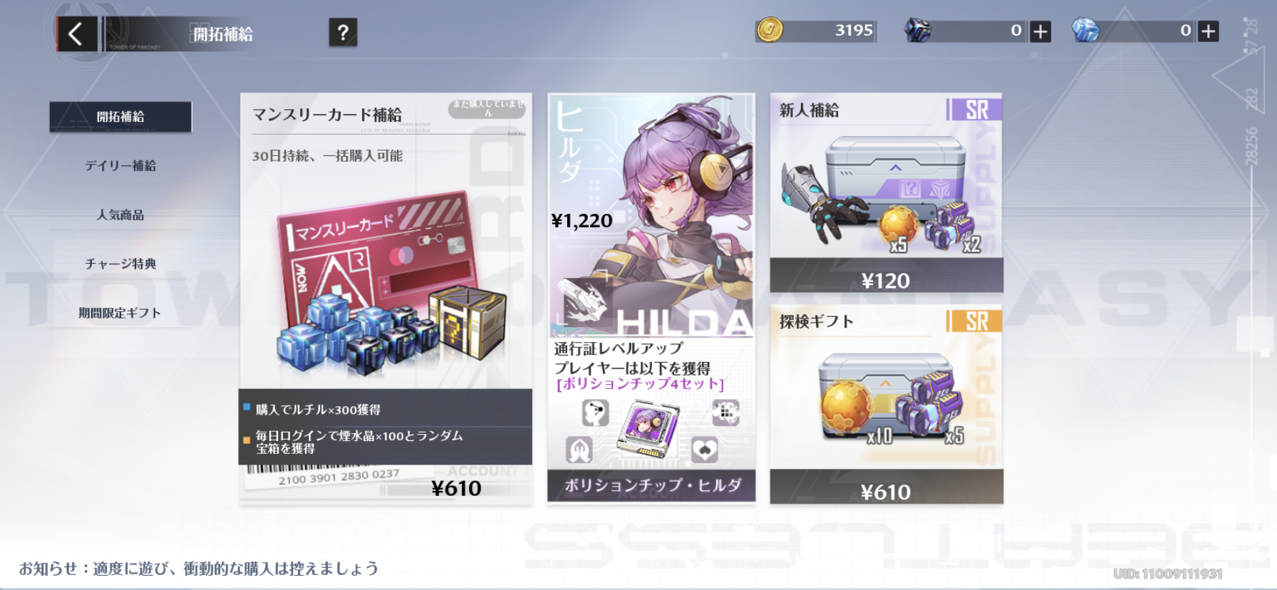 『Tower of Fantasy(幻塔)』では、マンスリーカードがおすすめです。