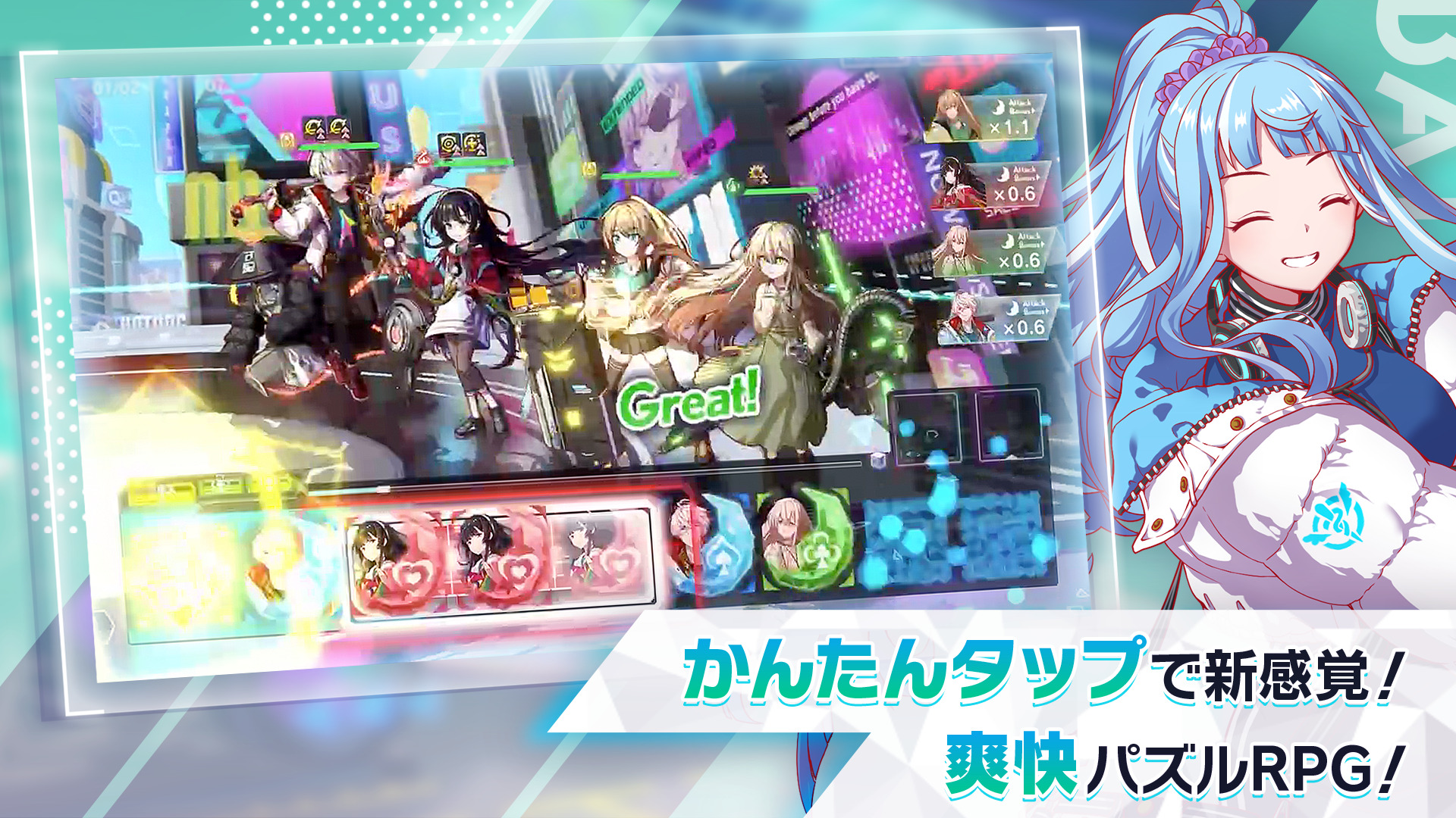 『アリスフィクション』は、爽快感抜群のヤミツキ光速パズルRPGです。仮想空間×ハイスピードバトルxパズルという組み合わせが素晴らしく、バトルも爽快感たっぷりで楽しいです。チュートリアルでは何度でも引き直し可能な10連ガチャがあります。仮想空間を舞台にフルボイスで展開するストーリーも魅力たっぷりですよ。