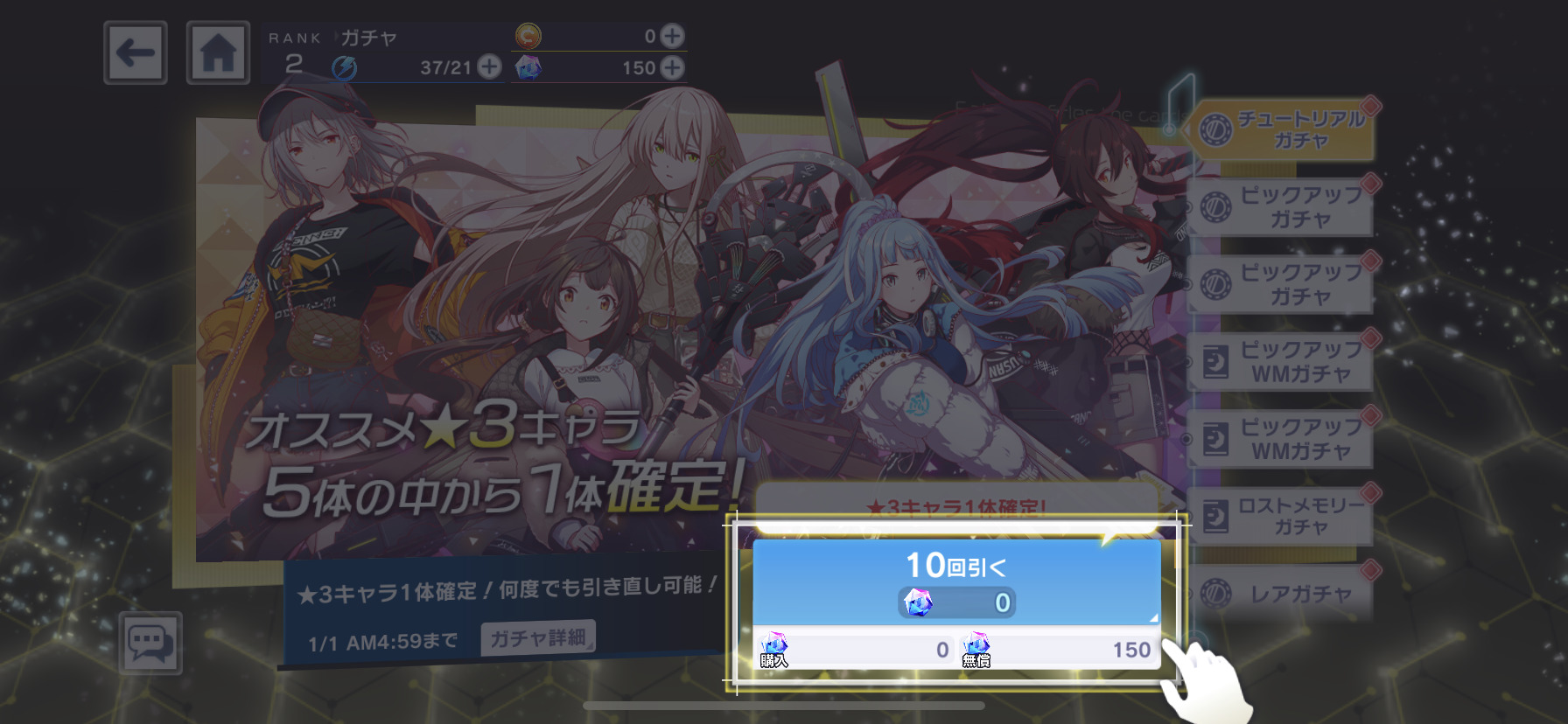本作『アリスフィクション』では、チュートリアルで10連ガチャが引けます。
