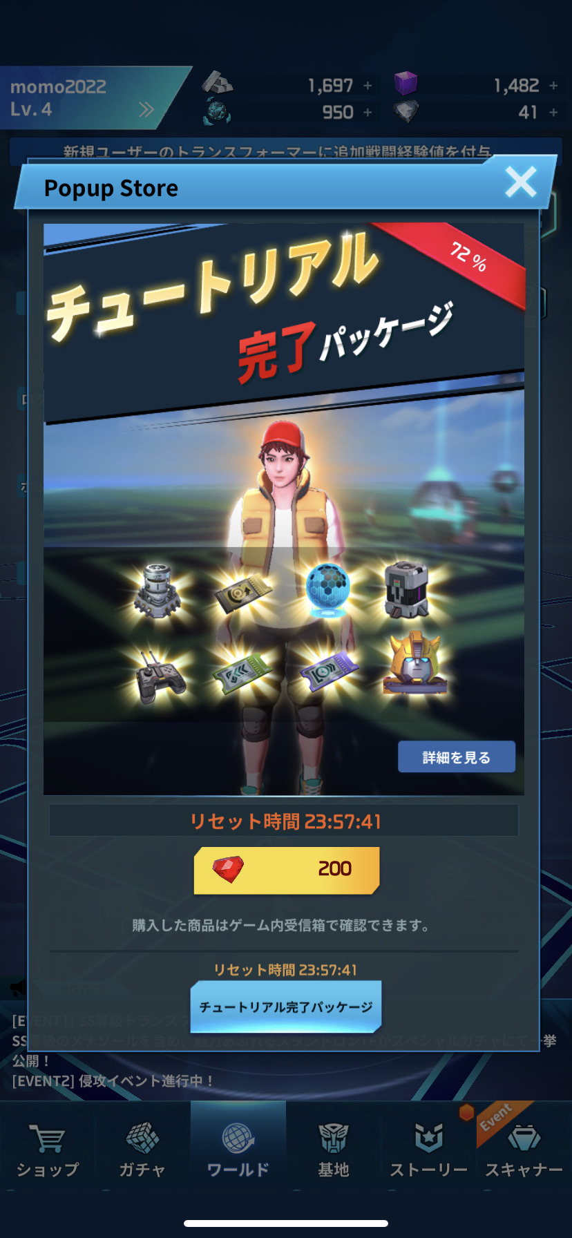 『TRANSFORMERS ALLIANCE(トランスフォーマーアライアンス) 』では、チュートリアル完了パッケージがお勧めです。