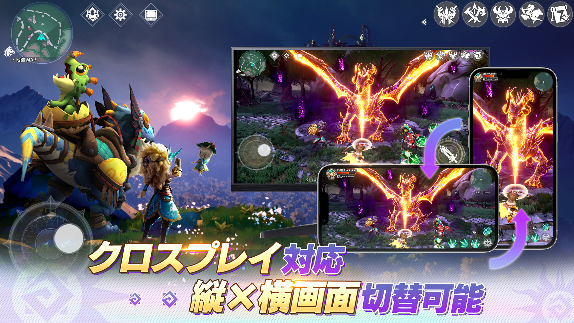 本作『モリノファンタジー:世界樹の伝説』では、次世代技術を搭載した画面が魅力的です。冒頭でも紹介させて頂きました通り、クロスプレイ対応で、縦横画面を切替可能というところが面白いです。