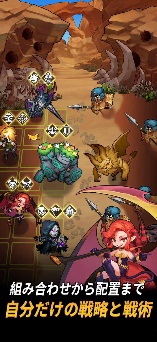 ダンジョンに存在する英雄たちを集めて、自分だけの最強パーティを作ることが本作の醍醐味です。さまざまな特性とスキルを持った敵の陣形を分析し、英雄を配置して勝利を掴みましょう!