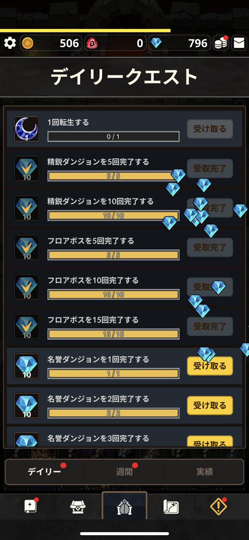 デイリークエストもかなり充実しているのが本作の特徴であり、見所の一つだと思います。デイリークエストをクリアしていくことで報酬が貰えます。良いモチベーションになりますよね!