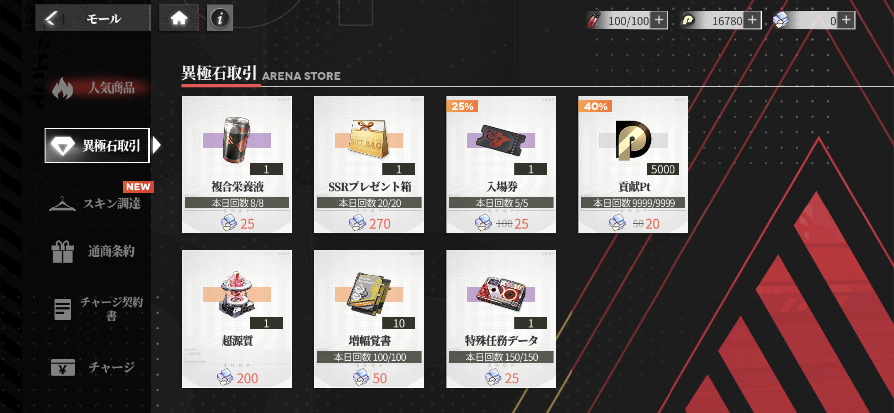異極石取引では異極石をつかって様々なアイテムを購入することができます。超源質はガチャチケットのようなもので、ケモノ娘の構成に必要ですよ。