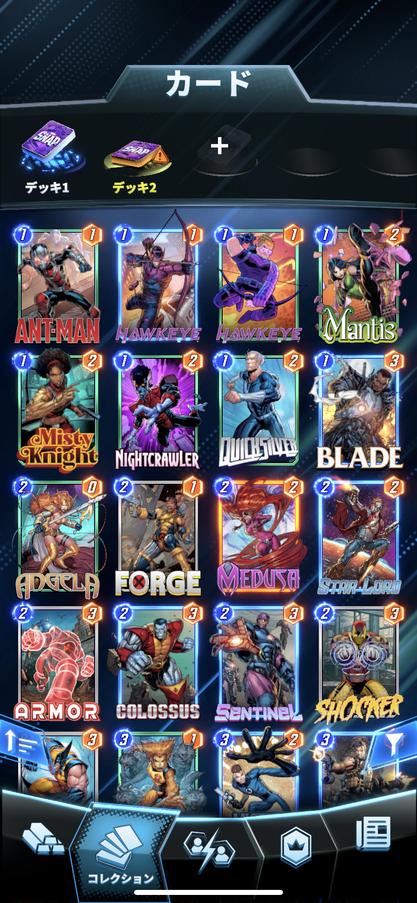 キャプテン・アメリカ、スパイダーマン、サノスなど、150種類以上のカードが登場しており、随時アップデートされていっています^^