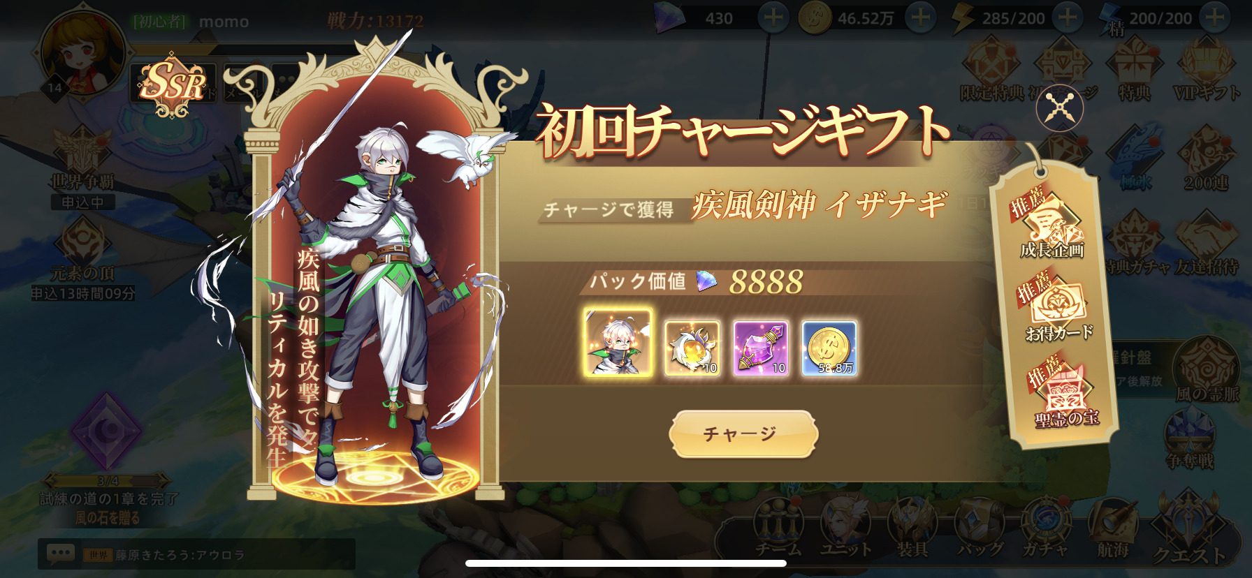 初回チャージギフトパックの価値は8888ダイヤ分とのことで、かなり豪華ですよね!