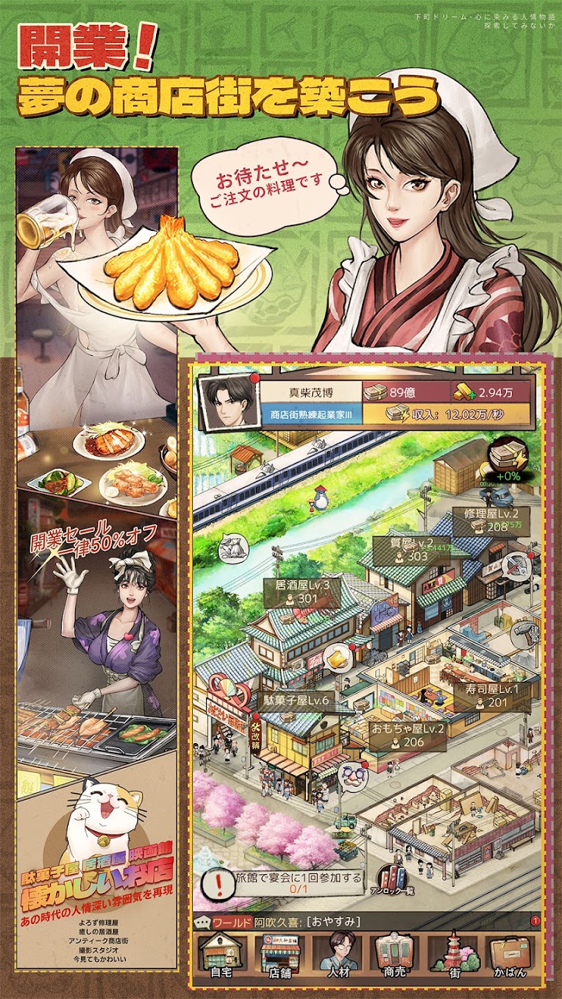 『下町ドリーム』は、癒し系レトロ経営モバイルゲームです!