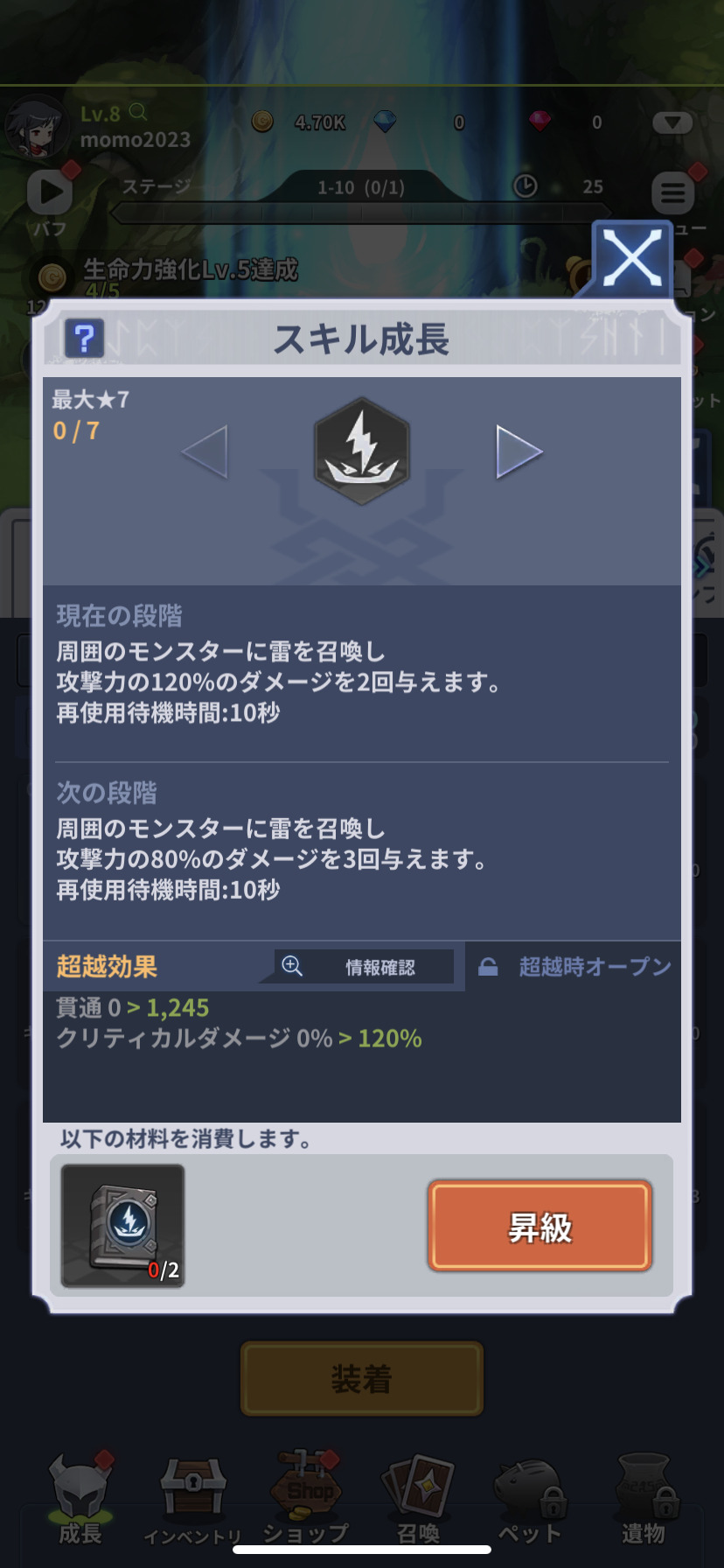 獲得したスキルを自由自在に使えるスキルシステムは、戦略に大きく関係してきますよ!昇級ダンジョン攻略でどんどんスキルを獲得しちゃいましょう!