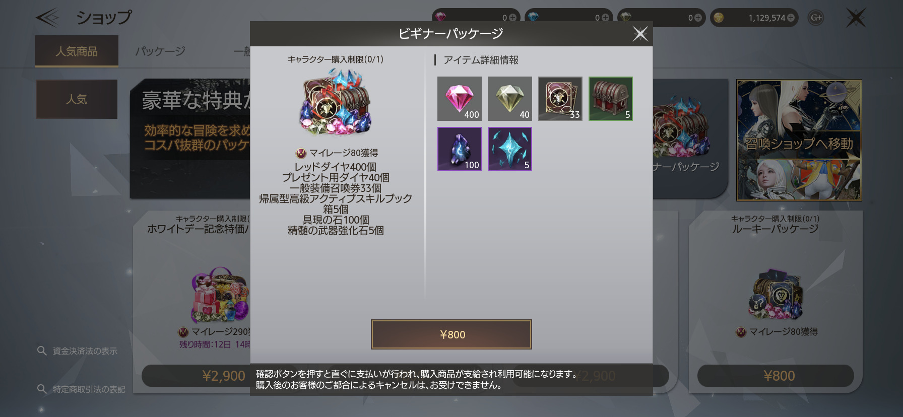 アイテム購入に必要なダイヤなど、非常に豪華な内容になっています!