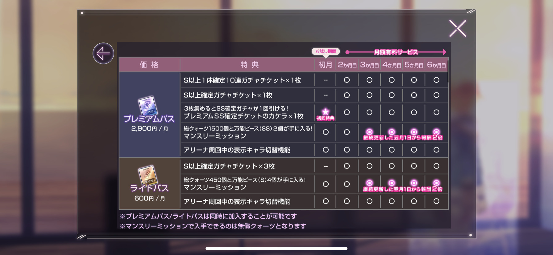 『ヘブンズバーンレッド』をじっくり楽しみたい方にパスがお勧めですよ!プレミアムパスでは高いかなと思う方には、ライトパスという月額600円のパスも用意されています。