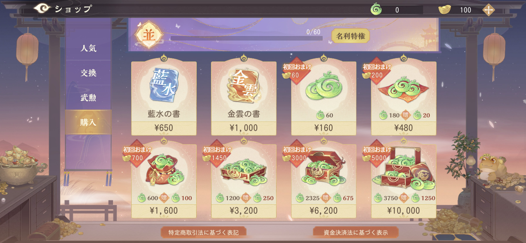 ちなみに本作は霊玉が課金アイテムとなっているんですが、初回購入で元宝のおまけがついてくるんです!沢山霊玉を購入するとおまけも多くなりますよ!これは嬉しいです。