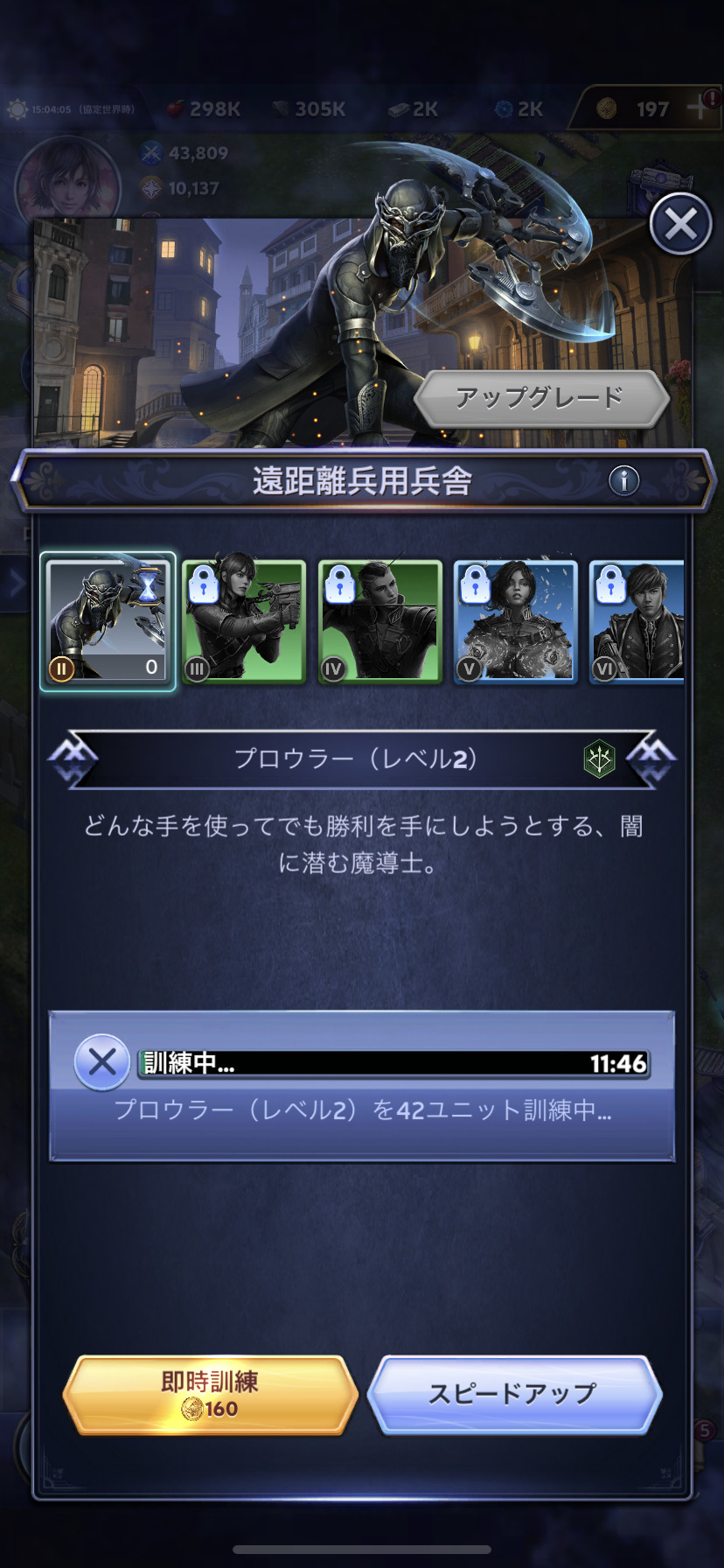 兵舎では訓練を行い、戦力をアップすることができます。