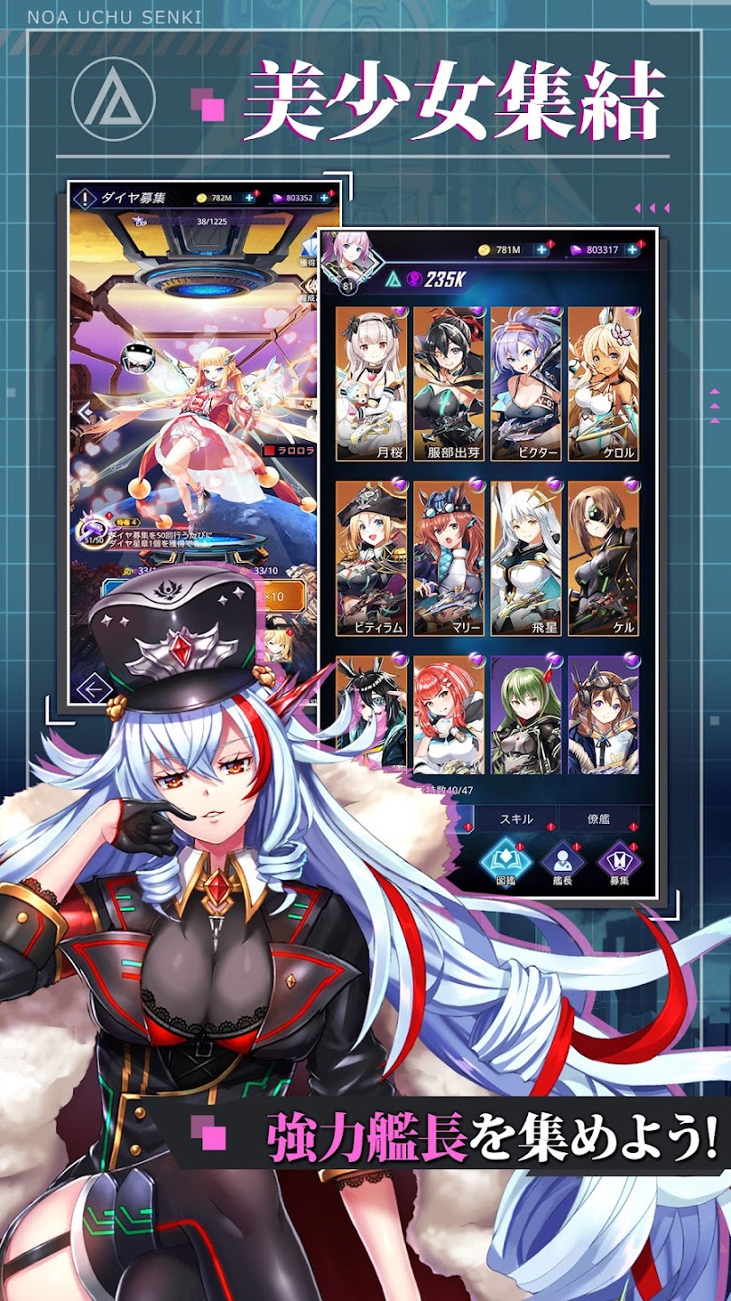 100名を超える美少女艦長を収集可能で、艦長を育成し、あなただけの艦隊を編成するのが楽しいですよ。簡単操作で戦略をたて、自軍を勝利に導きましょう!