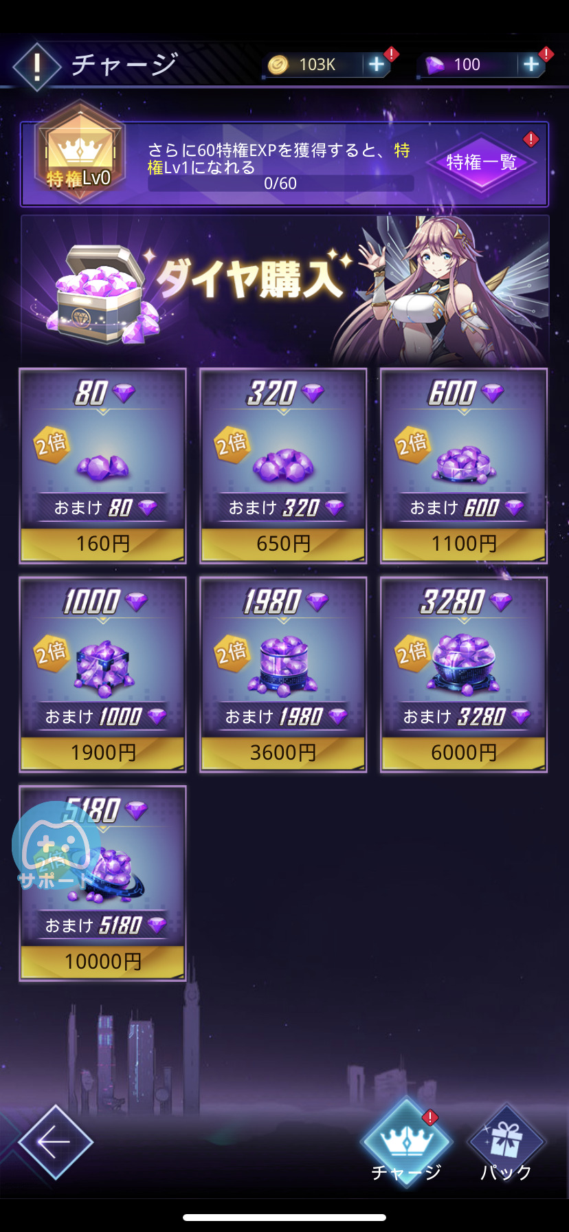 ダイヤチャージをしていくことで、ポイントがたまり、特権のレベルが上がって、特典を得られるシステムとなっています。