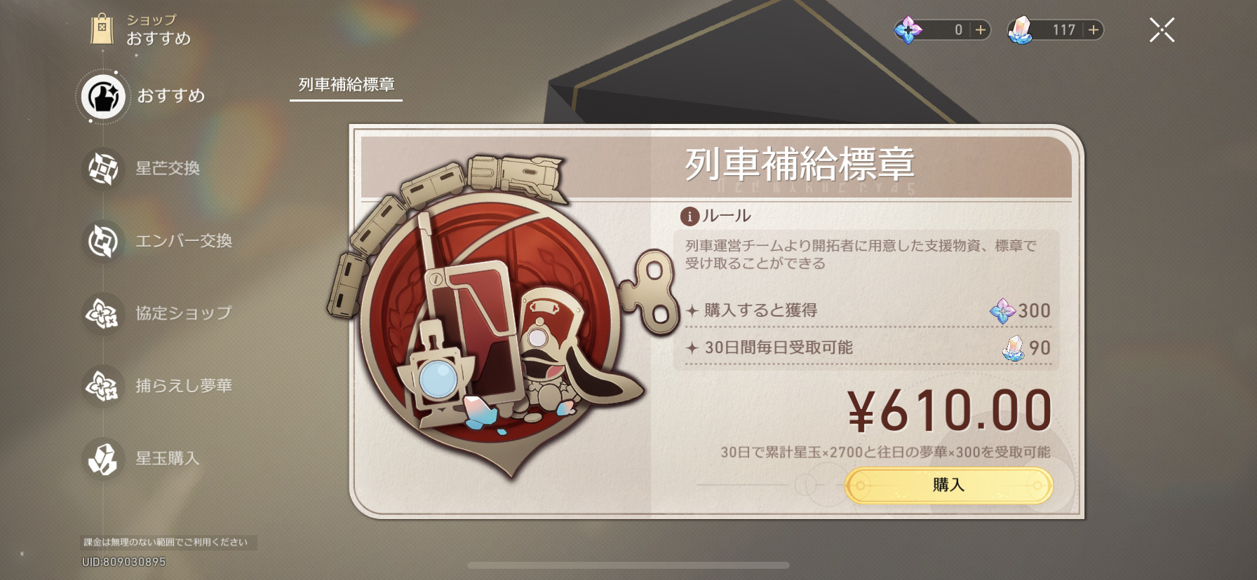 『崩壊:スターレイル』では、列車補給標章というものが用意されています。