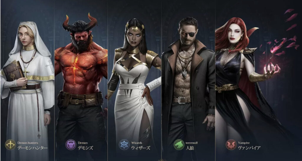 本作『ムーンライズ・領主の帰還』では、ヴァンパイアや悪魔・獣人など海外風ダークファンタジーなキャラデザが、ゲームの雰囲気にとてもマッチしています。